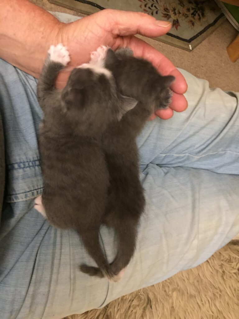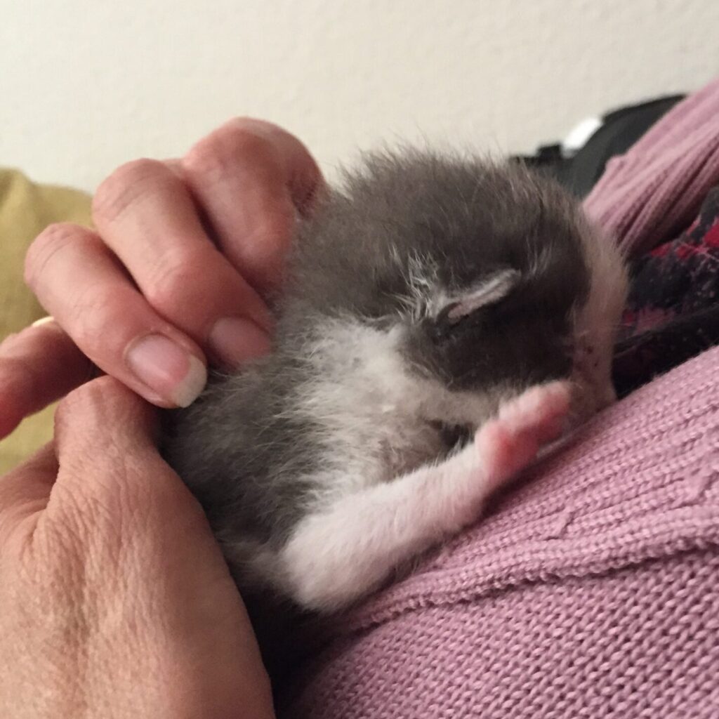 Am Donnerstag, den 2. September 2021 wurden die beiden Katzenbabys von der Katzenmamma verlassen aufgefunden. Die Mutter kümmerte sich nicht mehr um ihre Schatzle’s. Monika hörte eine Katze schreien. So meinte sie jedenfalls. Es wurde überall gesucht und alle Türen und Tore geöffnet. Bis sie diese zwei Winzlinge ganz verlassen auf einer Türschwelle vorfand.